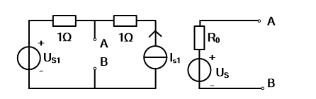 开始考试练习点击查看答案 - 12.某一有源二端线性网络如左图所示,已知:US1=1V,IS1=2A。该网络的戴维宁等效电压源如右图所示,其中US值为( )。