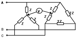 开始考试练习点击查看答案 - 19.图示对称三相电路中,已知电源线电压为380V。图中电压表内阻可视作无穷大则此时电压表读数为( )